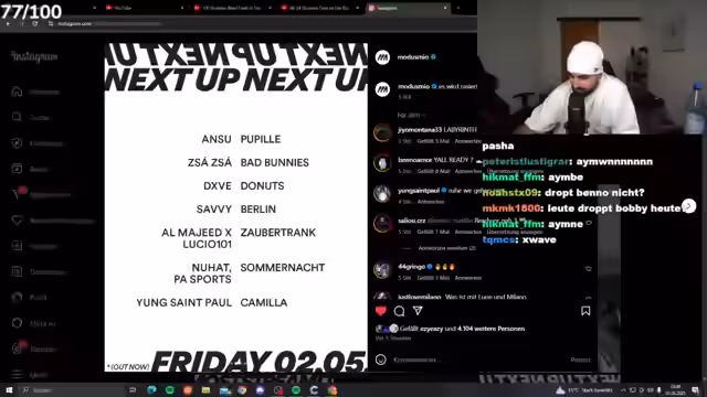00:00:00Der Stream beginnt mit Hintergrundmusik. Der Streamer begrüßt seine Zuschauer mit 'Salam! Was geht's euch?'. Er äußert seine Begeisterung für eine neue EP und erwähnt, dass der Stream auf die Reaktionen auf einen speziellen Song namens 'Nullo' fokussiert sein wird. Er bittet die Moderatoren, eine Ankündigung zu pinnen, die auf diese Songreaktionen hinweist, und bedankt sich für die Unterstützung und Abonnements seiner Community.