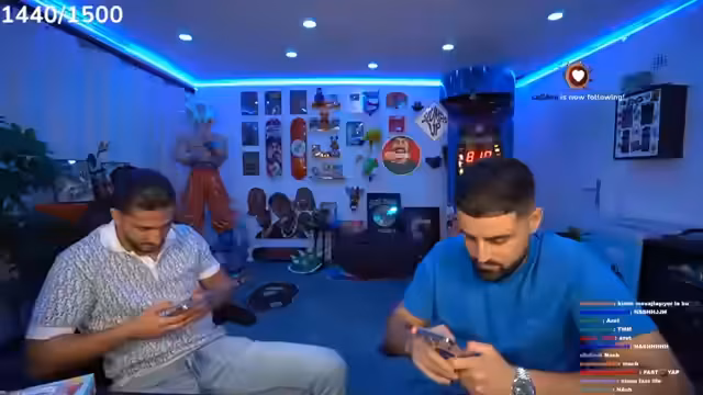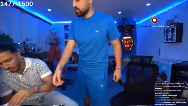 02:55:45Die Unterhaltung wendet sich einem interaktiven Element zu: einem Armwrestling-Automaten. Der Streamer und sein Gegenüber versuchen mehrfach, den Rekord des Geräts zu knacken. Es kommt zu humorvollen Auseinandersetzungen über Technik, den Einsatz von Handschuhen oder Feuerzeugen zur Steigerung der Kraft und die erbrachte Leistung. Es werden Höchstleistungen wie 833 Grad erwähnt und der Streamer schlägt vor, bei einem erneuten Rekordbruch eine Belohnung auszuloten, was zu einem spontanen Streit über den Wert von Uhren oder Bartfrisuren führt.