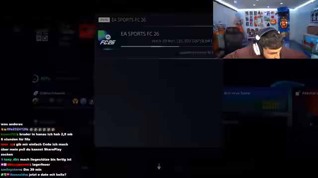 00:08:58Es wird angekündigt, dass im Laufe des Streams dreimal EAFC 26 verlost wird, mit einem Shoutout an EAFC für die Unterstützung. Parallel zum FIFA-Download und den damit verbundenen Wartezeiten wird eine Champions League Watchparty veranstaltet. Es wird über den Ausgang des Spiels Bayern gegen Chelsea spekuliert und nach interessanten Videos gefragt, auf die man reagieren könnte. Die Champions League Konferenz wird als beste Option angesehen, obwohl es kritisiert wird, wenn der Fokus zu sehr auf ein einzelnes Team gelegt wird. Der Streamer äußert seine Vorfreude auf das EAFC-Spiel und betont, dass es sich um ein Peak-Spiel handelt. Es wird klargestellt, dass die geringe Zuschauerzahl ein Anzeigefehler ist und nicht die tatsächliche Anzahl der Zuschauer widerspiegelt. Diskussionen über die Bezeichnung von lokalen Festen (Rummel, Kirmes, Messe) folgen, wobei Kirmes als bevorzugte Bezeichnung hervorgehoben wird.