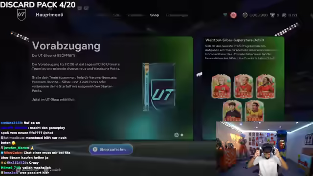 Der Streamer kämpft mit technischen Problemen bei der PS5 und Paypal, was den Kauf von FIFA Points erschwert. Soundausfälle und Frustration über Hass im Netz kommen hinzu. Nach langem Warten gelingt endlich das Pack Opening mit Messi und Rafinha. Es folgen Mindset-Talks, Gesellschaftskritik und Diskussionen über den Glauben.