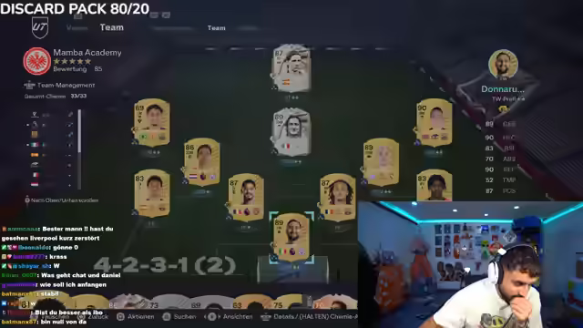 05:20:17Der Streamer spielt FIFA und testet den neuen Spieler Torres, ist aber von dessen Leistung enttäuscht und plant, ihn wieder zu verkaufen. Er wird während des Spiels von einem Zuschauer beleidigt und reagiert darauf. Der Streamer versucht, die neue Winterkollektion von LFDY zu leaken und errät das Passwort für die Seite. Er präsentiert die Kollektion, lobt die Designs und die Qualität der Kleidung und erwähnt, dass er selbst oft LFDY trägt. Er empfiehlt bestimmte Kleidungsstücke seinem Freund Arian und bedankt sich bei LFDY für die Zusammenarbeit.