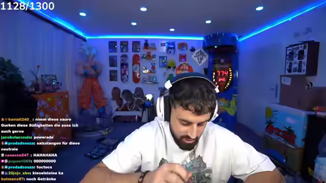 00:45:23Der Streamer fragt den Chat nach Empfehlungen für eine Bestellung bei Flink, einem Lieferdienst. Er bestellt Wasser, Oreos, Kinder Bueno, M&M's, Pommels von Lorenz, Pringles, Kaugummi und Lufterfrischer. Er erwähnt, dass er nächste Woche Sonntag einen sehr großen Gast im Stream haben wird, was er als "Stream des Jahres" bezeichnet. Der Streamer achtet darauf, Produkte von Firmen zu vermeiden, die boykottiert werden. Er telefoniert mit einem Freund, der sich mit Haribo auskennt, um die besten Gummibärchen zu bestellen.