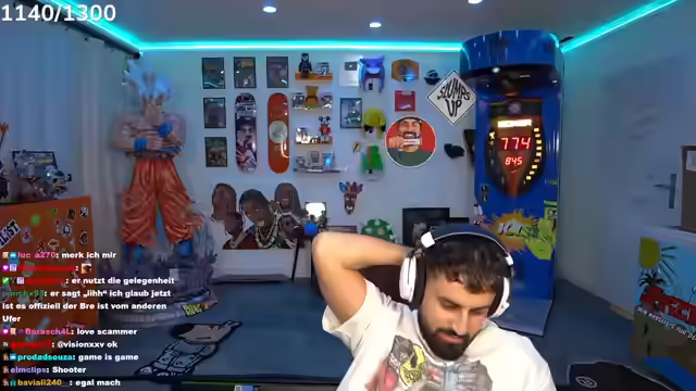 04:48:09Ein Zuschauer spricht über Depressionen und das Gefühl, von seinem besten Freund Momo geärgert zu werden. Er erzählt, dass er in Afghanistan war und die Streams über schlechtes WLAN verfolgt hat. Ein anderer Zuschauer wirft dem Streamer vor, ihn in Offenbach geghostet zu haben, woraufhin der Streamer zugibt, ihn nicht zu mögen, da er Faxen gemacht habe. Der Streamer spricht über TikToks, die vor seinem Studio gedreht wurden und wie diese ihn gestört haben. Er nimmt den Zuschauer Nawid, der solche TikToks gepostet hat, in sein Team auf und bietet ihm Matcha mit Strawberry und Pudding an. Aufgrund der ausgelassenen Stimmung wird die Seelsorge beendet.