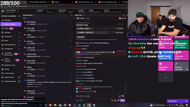 04:00:36Gegen Ende des Streams schlägt Dardan ein 'Aux-Battle' vor, bei dem er und Arian aus einer vorher ausgewählten Liste von Rappern Songs gegeneinander antreten lassen. Die Community entscheidet per Abstimmung, welcher Song und welcher Rapper in einer direkten Konfrontation besser ist. Jeder Streamer fünf Rapper per Zufall zugeteilt und muss einen Song für den Battle auswählen. Die Stimmung im Chat ist äußerst engagiert und zum Teil emotional, da die Ergebnisse eng ausfallen und von den Zuschauern kontrovers diskutiert werden. Das Aux-Battle bildet einen sportlichen und unterhaltsamen Abschluss des Streams.