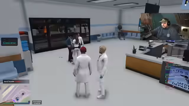 01:45:04Die Szene beginnt mit privaten Gesprächen und skurrilen Anspielungen. So gibt es Erwähnungen einer Hochzeit und eines Salamigratschens, was auf eine familiäre Dynamik hindeutet. Der Gesprächsfluss ist oft unlogisch und springt zwischen Themen wie Schweinefleisch, Türkenpartys und Frauenbeleidigungen hin und her, was eine chaotische und komödiantische Atmosphäre erzeugt. Ein weiterer Fokus liegt auf der Arbeit in einem medizinischen Umfeld, in dem der Streamer als Arzt auftritt, der Patienten mit seltsamen Beschwerden wie Hämorrhoiden behandelt und komische Diagnosen stellt.