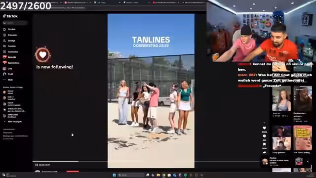 01:34:13Der Streamer und sein Gast schauen gemeinsam dessen TikTok-Profil durch. Sie analysieren die dortigen Kommentare und Inhalte. Es kommt dabei das Thema auf, dass der Streamer in diversen Frauenvideos auftaucht und dies Gerüchte über sein Privatleben nährt. Er bezeichnet diese Frauen als 'Freunde' und gibt an, 'PR-trained' zu sein. Er verteidigt sein Verhalten, indem er sagt, Respekt und Liebe zu zeigen, sei nicht negativ zu werten, und beschreibt das Gesehenen als 'Action'.