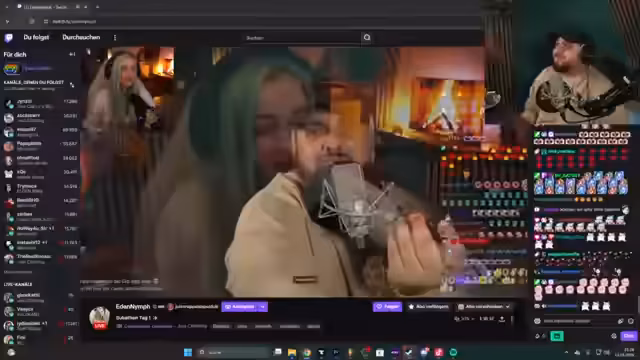 00:34:16Der Streamer öffnet Fortune Cookies und liest die Nachrichten vor, wobei eine besagt: "Es wird Zeit." Kurz darauf betritt Danogy den Stream, und der Streamer freut sich, für sie einen Song zu schreiben. Danogy, alias Eden Nymph, gibt fünf Wörter über sich selbst: Tattoos, grüne Haare, Rap, Katzen und Herr der Ringe. Sie erzählt, dass sie seit zwölf Jahren in der Altenpflege arbeitet und in ihrer Jugend gemobbt wurde, was zu einer Essstörung führte. Sie hatte auch eine schwierige Beziehung mit einem Narzissten. Auf die Frage nach ihrem Lieblingsessen antwortet sie Ramen und dass sie von einem erfüllten Leben mit Freunden träumt. Sie beschreibt ihren Traummann als intelligent und charakterstark, unabhängig vom Aussehen. Als weitere Stichworte werden Zuckermaus und ihr Lieblings-Pokémon Glurak genannt. Sie äußert sich nervös, aber zuversichtlich, dass der Streamer etwas Tolles aus ihren Informationen machen wird. Der Streamer beginnt mit der Produktion des Songs und bittet den Chat um Feedback zum Beat. Er erklärt das Konzept von "Trust" im Chat und betont die Bedeutung des Glaubens an sich selbst.