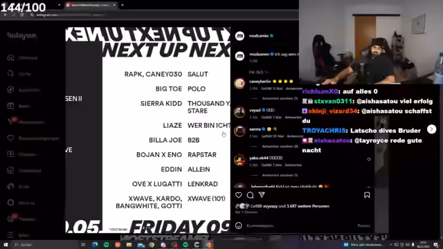 01:43:40Ein wiederkehrendes Problem ist die unklare Situation bezüglich einer neuen Wohnung. Der Streamer beklagt, dass seine Möbel und sein Bett seit sieben Wochen nicht geliefert werden, während er weiterhin Miete zahlt. Dieses Thema wird mehrfach aufgegriffen. Den Abschluss des Streams bilden erneut die Reaktion auf TikToks, die Vorstellung von Songs von Künstlern wie Ammo und Bobby, sowie eine Abschiedsrede an die Community mit Hinweisen auf das kommende YouTube-Video.