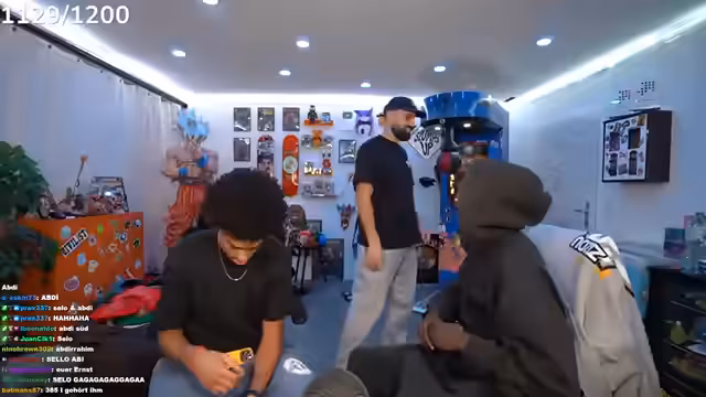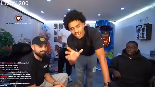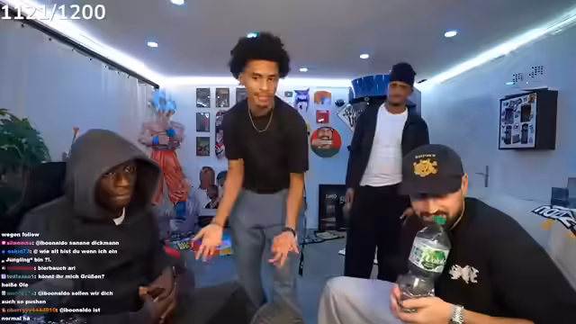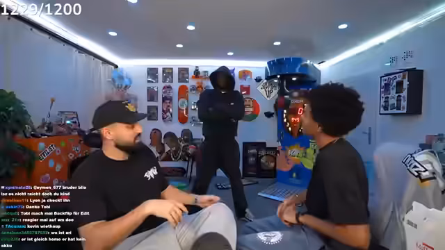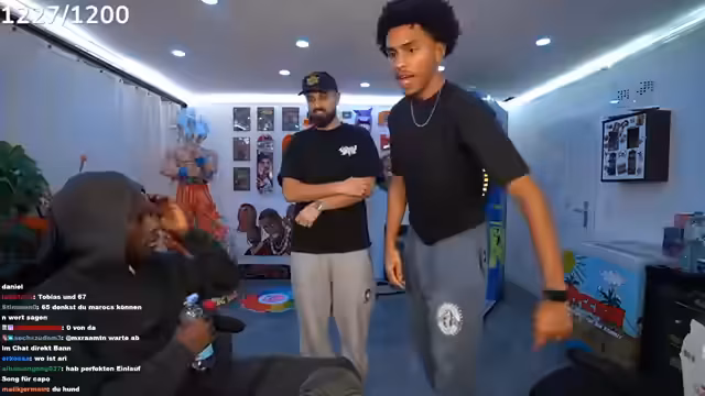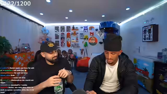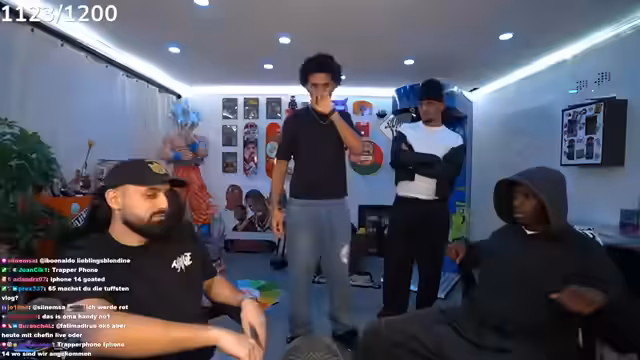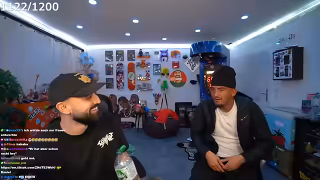 00:16:34Die angekündigten Gäste Tobi und Ari G treffen ein, die der Streamer scherzhaft als „Erfinder von Bad Bitch Time“ und „schwulste Brüder“ bezeichnet. Es wird über Tobis bevorstehende Reise nach Dubai gesprochen, die am Montagabend von Frankfurt aus startet. Zudem wird über die Schwierigkeiten gesprochen, Ari G in eine Playstation-Party einzuladen, da er oft ein totes Mikrofon hat oder beim FIFA-Zocken zu laut ist. Der Streamer präsentiert stolz sein neues IRL-Setup, das er fertiggestellt hat und das 8.000 bis 10.000 Euro gekostet hat, inklusive WLAN-Routern, SIM-Karten und Powerbanks. Er kündigt auch seine kommende 'Late-Night-Show' an, deren Set er den Zuschauern zeigt. Die erste Folge soll mit Raph Camorra sein, und er freut sich über die immense Unterstützung seiner Community, die innerhalb von 15 Minuten 30.000 Kommentare unter einem Beitrag hinterlassen hat.