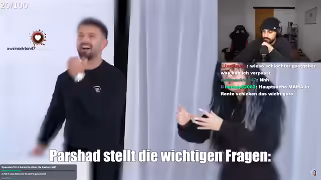 02:00:48Alle Kandidaten werden noch einmal nach vorne gebeten. Daniel vermutet, dass jemand 250.000 Euro netto verdient. Er versucht, den Unterschied zwischen 20.000, 30.000 und 40.000 Euro herauszufinden. Er fragt Erik, ob er einfach so 3.000 Euro per Paypal schicken könnte. Es wird über Privatversicherungen und Kredite diskutiert. Daniel muss ganz kurz ekelhaft oberflächlich sein. Es wird über das Peso Longsleeve und einen Streit mit Justin diskutiert. Daniel erklärt, dass es nicht so deep ist. Er ist Friedensrichter geworden auf Twitch. Es wird über L'Europianer-Caps und eine Mütze mit Fell diskutiert. Es wird über Streit mit Fashion-Leuten und eine Firma an die Wand gefahren diskutiert. Es wird über Abdi Raxman und TikTok-Leute diskutiert. Es wird über ein Team Bass Club oder Team Bürgeramt diskutiert. Daniel sagt, er sei SC Bürgeramt und Berlin Underdogs. Er ist Bowsers Manager. Es wird über Slums Freedom Freiheit und die Schlampen diskutiert. Daniel telefoniert mit jemandem und sagt, die Kreuzberger seien alle eine Sekte. Es wird über den Höchststeuersatz und Pfand diskutiert. Daniel ist sich bei Lisa und Svenja unsicher. Es wird darüber diskutiert, was reiche Menschen machen. Daniel fragt Svenja, was sie beruflich macht. Sie ist Kellnerin und macht Daytrading. Moritz macht Daytrading, Onlinehandel und E-Commerce. Lisa ist Krankenschwester. Erik hatte ein Planungsbüro für Raumakustik, Immobilien und Film und Fernsehen. Daniel findet, man kann nicht anhand des Aussehens beurteilen, wie viel jemand verdient. Es wird über Champions League diskutiert. Daniel geht eine Pfeife rauchen und Champions League gucken. Er verabschiedet sich und bedankt sich bei den Zuschauern.
