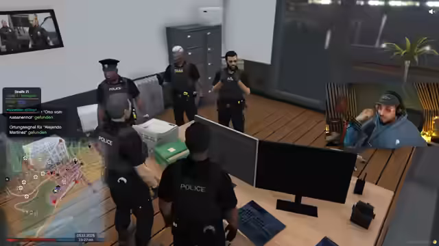01:34:25Die abschließende Phase des GTA RP-Einsatzes gipfelt in einer direkten Konfrontation. Die Polizisten haben einen Verdächtigen gestellt, doch ein weiterer Kollege gerät in Gefahr, da er von einem Auto angefahren zu werden droht. Die Szene spitzt sich zu, als 'Herr Kato' verdächtige Personen mit gezogener Waffe und Rufen wie 'Haltile' konfrontiert, die Identität der Festgenommenen jedoch unsicher ist. Die Handlung endet mit einem unsicheren Ausgang, in dem die Beamten verwirrt über die Fortführung des Einsatzes sind und eine Eskalation nur knapp vermieden wird.