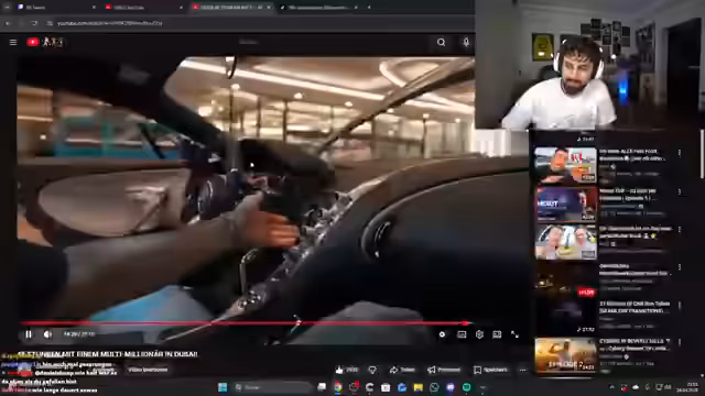 01:40:52Der Streamer ließ sich vom Luxmaxer bewerten, der ihm aufgrund seiner Augenpartie eine 4 von 10 gab. Der Streamer nahm diese Bewertung jedoch gelassen und betonte, dass es wichtiger sei, sich selbst zu mögen als auf die Meinung anderer zu hören. Er erzählte auch von seinen aufregenden Erlebnissen wie dem Fallschirmspringen in Dubai, was er als eine der größten Erfahrungen in seinem Leben bezeichnete, und dem Fahren eines Bugatti Chiron, wobei er zugab, dass er ein solches Auto aufgrund der mangelnden Kontrolle nicht kaufen würde.