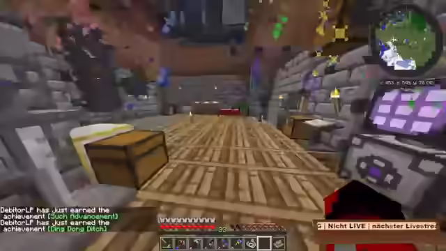 02:21:33Das Modpack befindet sich im internen Test und ist fast fertig. Es enthält neue Items für das ME-System und grafische Updates durch eine neue Version von N.I.O., inklusive Telepatch-Funktion. Die Rüstung wurde bereits aufgegradet und plant, eine Deep Storage Unit zu bauen, um die Query im Keller des alten Hauses laufen zu lassen und später komplett umzuziehen. Das Wasser soll in verschiedene Richtungen fließen, und unten wird ein Riesenreaktor mit Räumen in den Wänden gebaut, inklusive eines Händlers. Die Blöcke sind durch Updates im Modpack rund geworden. Die Karte oben rechts ist nicht im Modpack enthalten, aber verlinkt. Ziel ist es, eine Deep Storage Unit zu bauen, um viele Sachen zu speichern, allerdings ist das Rezept teuer. Es werden Materialien wie Elektrum, Silber und Gold benötigt. Die Felder sind durch einen Junkloader bereits gut bewirtschaftet, und die Composter-Machine ist effektiv. Am Sonntag um 19 Uhr wird an der Höhle weitergearbeitet. Außerdem erwähnte er, dass er Gronkh ein paar Enderium Ingets gegeben hat.
