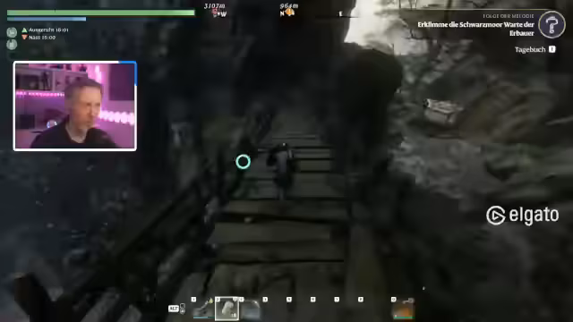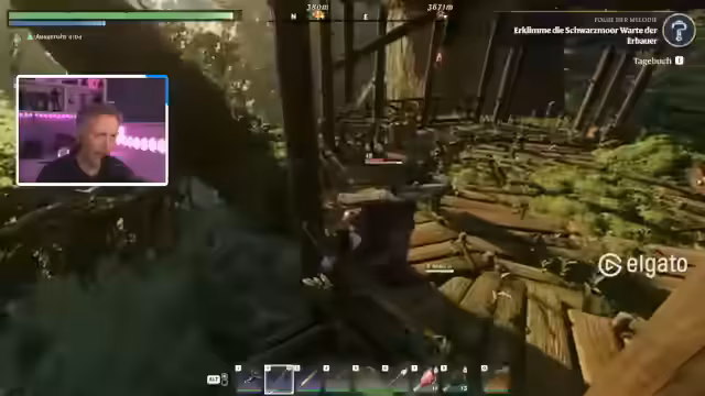 01:37:29Nach dem WoW-Segment wechselt der Stream zu Enshrouded. Der Spieler zeigt den Fortschritt im gemeinsamen Haus mit Marco: Eine Küche mit Ofen, ein Kellerbereich und Räume für Bettungen. Zuschauer wie 'Melli' haben bei der Ressourcenbeschaffung (Holz, Steine) geholfen. Es wird erklärt, dass Bauobjekte dauerhaft bleiben, während die Welt sich zurücksetzt. Ein Server-Überfüllungsproblem wird erwähnt, bevor der Stream in Enshrouded weitergeht.