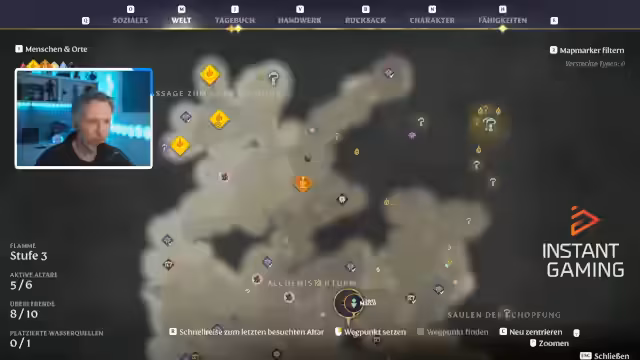 01:54:48Nach dem erfolgreichen Login spawnert der Streamer an einem neuen Ort. Er stellt fest, dass sein Charakter-Level erhalten geblieben ist, aber er seine Ausrüstung (Flieger, Handschuhe, Waffen) verloren hat. Er sammelt neue Gegenstände aus Chests, diskutiert mit Marco über Waffentypen (Einhand vs. Zweihand) und Bogen-Skills. Er bemerkt optische Änderungen an seinem Charakter und diskutiert mit Marco über die Möglichkeit, das Aussehen anzupassen und bessere Rüstungen zu craften.