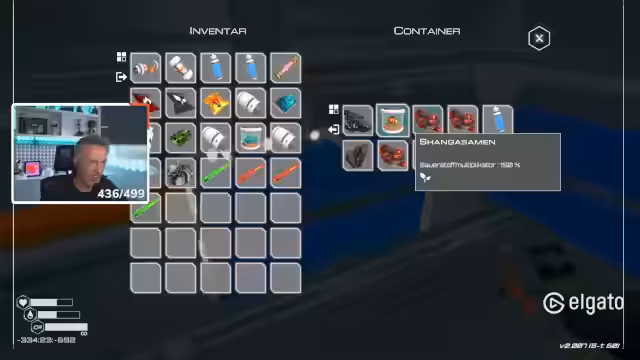 02:11:34Der Streamer startet mehrere Samenraketen und verbessert die Sauerstoffproduktion um 5000 Prozent. Er stellt fest, dass die Produktion von Ressourcen durch Booster so schnell ist, dass die Crafting-Stationen ständig voll sind. Trotz der hohen Produktion sucht er nach Wegen, die Ressourcen effizienter zu verarbeiten und zu lagern, da einzelne Kisten überlaufen.