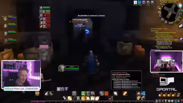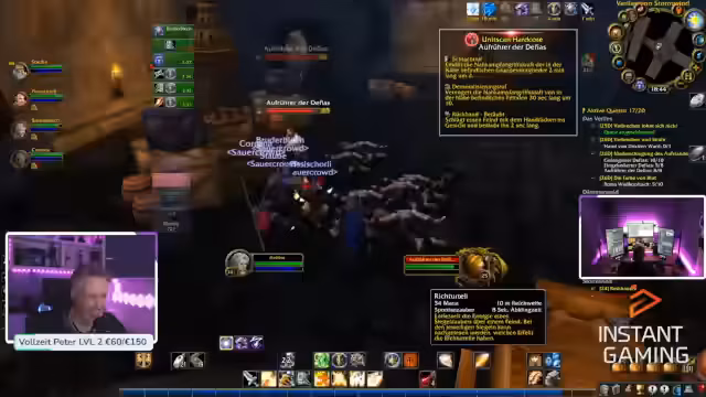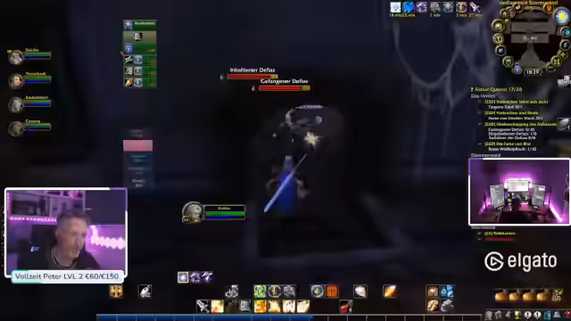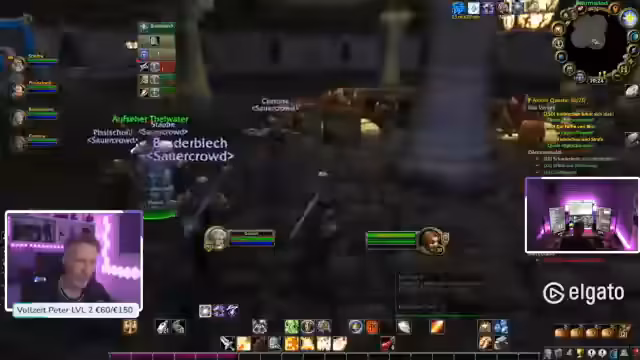 00:40:26Die Gruppe durchläuft das Verlies, bekämpft verschiedene Gegner und begegnet Bosskämpfen. Dabei werden strategische Anweisungen gegeben, wie die Verteilung der Gegner und die Nutzung spezifischer Fähigkeiten. Der Streamer erwähnt den Tod eines Spielers in der Gruppe und den loot, der dabei ist, während er über die Balance zwischen Tanken und Schadensausgabe diskutiert, insbesondere im Kontext von Paladin-Spielern.