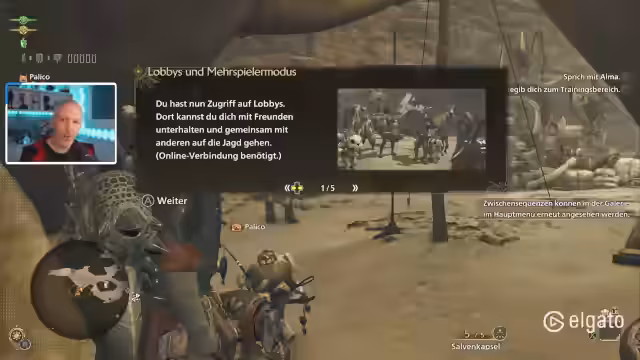 01:38:21Nach dem ersten Jagderfolg erkundet der Streamer die Spielwelt weiter. Er interagiert mit NPCs, nimmt eine wichtige Quest an, um nach einem anderen Stamm zu suchen, und sammelt Ressourcen. Die Möglichkeit, mehrere Waffen mitzuführen und zwischen ihnen zu wechseln, wird als strategisch vorteilhaft dargestellt. Der Streamer stellt fest, dass das Spiel trotz komplexen Systemen intuitiv ist und einen soliden Eindruck hinterlässt.