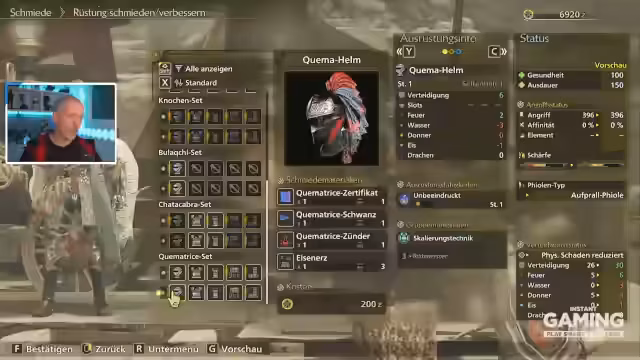 00:45:33Der Streamer taucht tief in die Jagdmechanik ein und bekämpft sein erstes Monster, einen Quelematrix. Er erläutert die Kampfstrategie, die das Beobachten des Monsterverhaltens erfordert, um Schwachstellen zu identifizieren. Das System zum Verbessern der Waffe durch Wetzen wird genutzt. Der Wechsel zwischen Waffenarten im Kampf wird als entscheidend für Erfolg hervorgehoben. Der Kampf verläuft holprig und fehlerhaft, zeigt aber die Komplexität des Kampfsystems.
