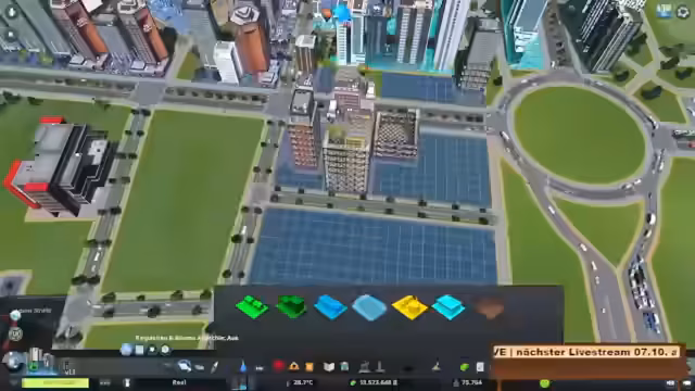 00:26:40Nach der Verkehrsumgestaltung wird ein neuer Stadtteil als Financial District spezialisiert. Dieser Bereich erhält Bürogebäude, eine Börse und ergänzende Infrastruktur wie Polizei und Parkplätze, um wirtschaftliche Aktivitäten zu fördern. Der Streamer erwirbt Aktien und diskutiert Wirtschaftsmechaniken, während er die Anbindung an den Hauptbahnhof plant und Gebäudespezifikationen für Finanzinstitutionen auswählt. Das Ziel ist es, ein funktionierendes Wirtschaftszentrum zu schaffen, das die Stadtentwicklung vorantreibt, mit Hinweisen auf mögliche Erweiterungen in nachfolgenden Streams.