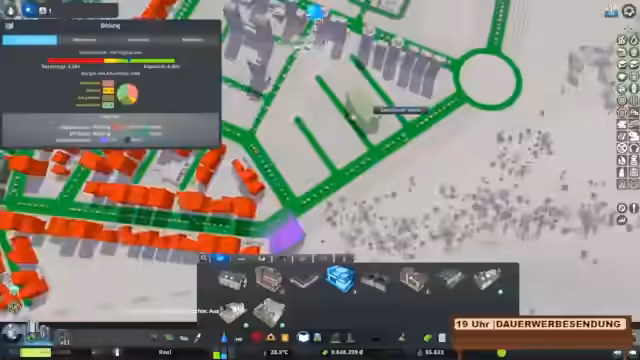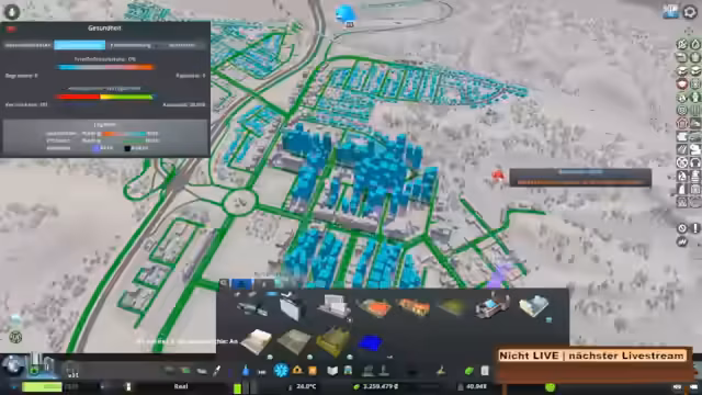 03:13:56Der Streamer installiert Ampeln, die in dieser Stadt überraschend gut funktionieren, und richtet eine U-Bahnlinie mit drei Bahnen ein, um den Verkehr zu entlasten. Er erweitert Wohngebiete in der Nähe der Altstadt, plant Sportanlagen wie einen Tennisplatz und bewertet die Auswirkungen der Realistic Population Modifikation, bei der große Haushalte häufig sind und kleine Häuser sich lohnen.