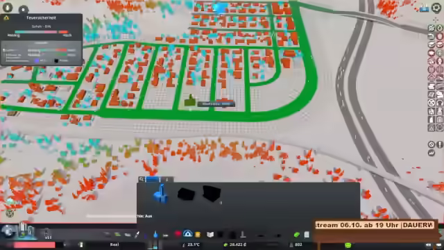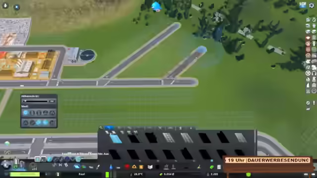 00:28:48Es wird festgestellt, dass die Industriegröße im Verhältnis zur Stadtgröße sehr klein ist. Die nächste Stadtstufe wird bei 1300 Einwohnern erreicht, wodurch das "Bügeln" (Begradigen von Flächen) freigeschaltet wird. Es werden eine Polizeiwache und eine große Grundschule gebaut, um die Bedürfnisse der wachsenden Bevölkerung zu erfüllen. Die Nachfrage nach Wohngebieten ist sehr hoch, was zu einem verstärkten Bau von Wohngebieten führt. Es wird ein neues Wohngebiet mit einer kurvigen Straßenführung geplant, um ein schiffähnliches Design zu erzeugen. Es wird eine Funktion genutzt, um auf der rechten Seite der Straße keine Gebiete zu erstellen. Ein Stadtteil namens Olivenpark wird angelegt und auf lokale Produkte spezialisiert. Es werden Wege gebaut, um die Erreichbarkeit der Gebäude zu verbessern. Eine Oberschule wird gebaut und Parks und Plätze werden hinzugefügt, um die Lebensqualität zu steigern. Es wird überlegt, wo Parks platziert werden sollen, um möglichst wenig Häuser zu zerstören. Ein kleiner Spielplatz und ein Park mit Birken werden gebaut. Es werden Bäume gepflanzt, um das Stadtbild zu verschönern.