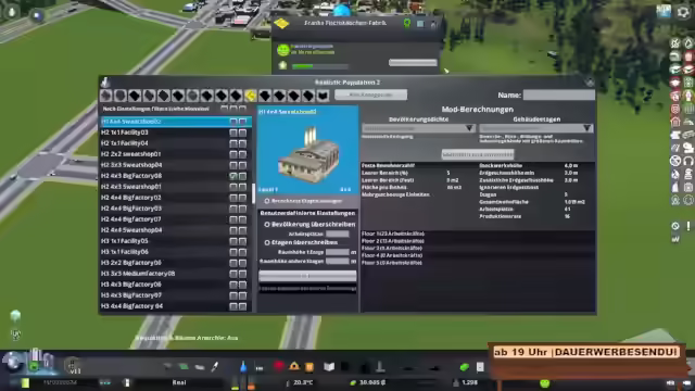 00:17:58Es wird die Stadt mit der Realistic Population Modifikation weiterentwickelt. Die Modifikation ermöglicht eine höhere Einwohnerzahl pro Gebäude, was zu einer kompakteren Stadt führt. Es wird die Stadt erweitert, wobei das Straßenlayout optimiert wird. Es wird überlegt, wie lange das Let's Play dauern wird, abhängig davon, wie gut die Modifikation spielbar ist. Es werden neue Wohngebiete gebaut und eine Arztpraxis geplant. Mit 600 Einwohnern wird ein Überschuss von 1.300 bis 1.400 Geld erwirtschaftet. Eine Arztpraxis wird gebaut, um die Gesundheitsversorgung der Bevölkerung sicherzustellen. Durch das Erreichen der nächsten Stadtstufe werden neue Gebäude wie Feuerwehr und Polizei freigeschaltet. Eine Feuerwache wird gebaut, um die Stadt vor Bränden zu schützen. Es wird überlegt, wo die Polizei gebaut werden soll, um eine gute Abdeckung zu gewährleisten. Es werden Geschäfte und Bäume platziert, um das Stadtbild zu verschönern. Es wird über das Problem mit der Maus gesprochen, die zwischen zwei Computern wechselt.