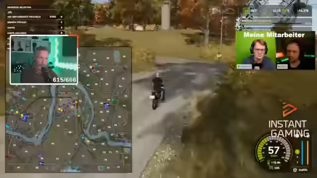 00:04:12Der Stream startet mit einer Runde Farming Simulator 25. Der Streamer begrüßt die Zuschauer und erwähnt, dass der Stream fast nicht zustande gekommen wäre, da er zuvor unterwegs war. Es wird eine Runde mit den Spielern Kratios, Steffler, Pharao, Ingo, Mr. Dondot, Wayne, Doc Runkel, THP 1985 und Mögeltier angekündigt. Der Streamer, der auf dem Land aufgewachsen ist, nutzt das Spiel eher als Manager-Simulation und treibt selten selbst, sondern bedient die Maschinen mit diversen Mods.