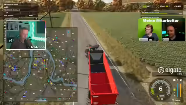 01:14:00Im Landwirtschafts-Simulator werden Aufträge angenommen, doch die Spieler lernen schnell, Pastinaken und Rote Beete zu meiden, da sie als das „Schlimmste“ gelten. Die Diskussion wechselt zur Aufstallung von Tieren, insbesondere Hühnern. Dabei wird die enorme Preissteigerung von 30 auf 360 Hühner bei teureren Ställen thematisiert, inklusive der Möglichkeit von passivem Einkommen durch Solaranlagen und Windräder.