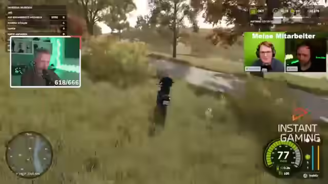 00:11:59Es wird über ein heiß gewordenes Lenkrad gesprochen, das durch das Force-Feedback verursacht wurde. Die Möglichkeit eines Knaufs am Lenkrad wird diskutiert, um das Wenden zu erleichtern. Der Streamer öffnet die Map, um sich zu orientieren, und stellt fest, dass man schneller vorankommt, wenn man die Erntemaschine ausschaltet. Die geringe Bezahlung von 7000 Euro für den aufwendigen Auftrag wird kritisiert. Es wird beschlossen, den Auftrag trotz der Schwierigkeiten zu Ende zu bringen, um eine Vertragsstrafe zu vermeiden. Die Gruppe ist sich einig, dass sie in Zukunft keine Pastinaken mehr ernten wollen, da dies zu aufwendig ist. Es wird überlegt, wie der RGB die Pastinaken wegbringen kann, und der Streamer bietet an, kurz aufzunehmen. Debitor wird eingeladen, dem Spiel beizutreten, und es wird geklärt, wo er die Pastinaken hinbringen muss. Der Abgabeort befindet sich am anderen Ende der Map, was die Aufgabe zusätzlich erschwert. Der Streamer sucht nach dem besten Weg dorthin und fragt den Chat um Rat.