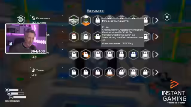03:51:35Die Biomasseproduktion läuft gut und erreicht bald die Grenze für einen Pflanzenverteiler Stufe 2. Nachdem die Rakete mit den Samen gestartet wurde, steigt die Produktion drastisch von 85 auf 1000 Gramm pro Sekunde. Die alte Pflanzenanlage ist nicht mehr nötig und wird demontiert, da durch die neuen Samen ein Wachstumsbonus von 1100% entsteht.