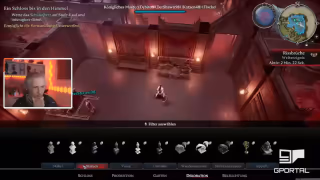 00:02:22Der Fokus liegt auf dem Bau und der Erweiterung des Schlosses im V-Rising. Der Streamer sucht nach neuen Materialien und erkundet neue Gebiete. Er stellt fest, dass die Räume im Spiel viel zu klein geworden sind. Später beginnen er und seine Mitspieler, verschiedene Bosse wie die Geomantin und Elena zu jagen, um ihre Blüten zu sammeln und stärker zu werden. Dies erfordert taktisches Vorgehen und Koordination im Team.