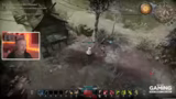 00:21:21Nach dem Kampf gegen Jade ist das nächste Ziel, den verfluchten Champion Gaius zu finden. Dieser befindet sich unterhalb des Schlosses in einer Arena. Der Kampf gestaltet sich jedoch kompliziert, da das Gebiet heilige Strahlung ausstrahlt, der Streamer Schaden nimmt und seine Fähigkeiten eingeschränkt werden. Es wird ein Trank benötigt, um die Strahlung zu überstehen und den Boss bekämpfen zu können.