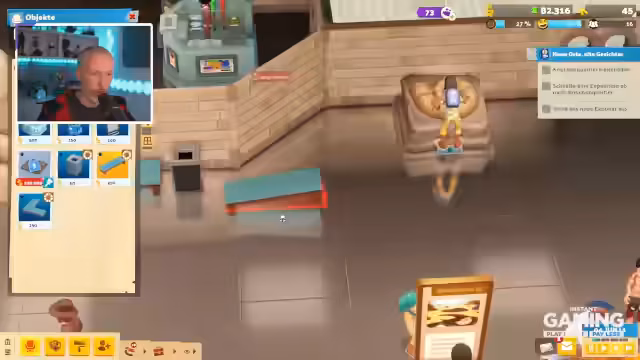 02:45:39Es werden Museumsführungen in Erwägung gezogen, um das Museumserlebnis zu verbessern und Spenden zu generieren. Die Qualität der Führung hängt von verschiedenen Faktoren ab, darunter die Begeisterung, die Dekoration, die Exponate und die Stimmigkeit des Konzepts. Es wird überlegt, wo der Eingang für die Führungen platziert werden soll. Es wird erwähnt, dass das Museum theoretisch sehr groß werden kann. Es wird eine Expedition gestartet, um weitere Exponate zu finden. Es wird erwähnt, dass der Eintritt erhöht werden kann. Es wird überlegt, ob ein Kaffee-Kiosk gebaut werden soll, um mehr Geld zu verdienen. Es wird ein zufälliges Ereignis ausgelöst, bei dem Mitarbeiter alles vollkotzen. Es wird erwähnt, dass man Mitarbeitern Arbeitsbereiche zuteilen kann. Es wird festgestellt, dass man Ausstellungsstücke dekonstruieren kann, um mehr über sie herauszufinden und das Wissen der Gäste zu erweitern. Es wird erwähnt, dass man das Gebäude noch weiter bauen kann. Der Streamer plant, das Spiel möglicherweise am Montag fortzusetzen und andere Museen zu besuchen.
