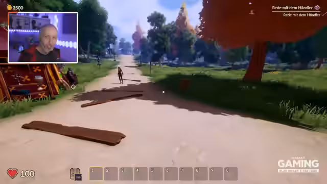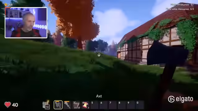 02:48:34Zuerst erkunden die Spieler die Umgebung und stoßen auf das Nest des Bösen. Sie sammeln Ressourcen wie rohes Eberfleisch und Armbrustbolzen. Nach anfänglichen Problemen mit der Bedienung der Steuerung und einem versehentlich gegessenen Pilz beginnen sie, die Nester systematisch abzubauen. Dabei kämpfen sie gegen verschiedene Kreaturen wie Bären und Wölfe, die sie durch Blocken und gezielte Schüße besiegen. Der Fokus liegt auf dem Sammeln von Loot und dem Erfüllen von Quests im Wald.