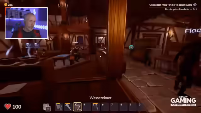 01:36:39Das Gameplay startet mit dem weiteren Aufbau der Ale & Tale Tavern. Die Spieler erkunden den Shop, um Möbel wie Passhalter und Kuhregal zu kaufen, und stellen fest, dass diese um die 200 Dublonen kosten. Da sie bereits einige Mögel besitzen, entscheiden sie sich, Gerste nachzukaufen. Die Hauptaufgabe besteht darin, die Taverne zu betreiben, Essen zu kochen und Gäste zu bedienen. Sie stellen fest, dass sie mehr Wasser benötigen und sich überlegen, einen zusätzlichen Kochtopf anzuschaffen, um den Arbeitsablauf zu optimieren.