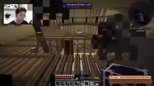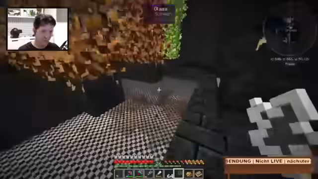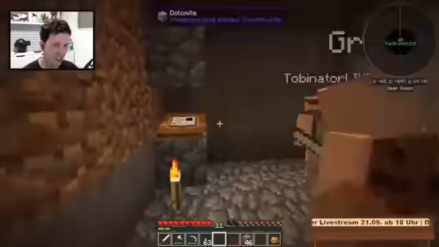 08:12:34Nachdem er Tobi eine Aufladung für seine Schuhe spendiert hat, um die Nachtsicht zu aktivieren, springt der Streamer in dessen Höhlensystem. Es kommt zu einer unvorhergesehenen Explosion durch eine Feuerfledermaus, was beide schockiert. Der Streamer erklärt, dass diese Monster explodieren können, wenn sie den Spieler lange genug belästigen. Anschließend stellt er das Kreosidöl als entscheidende Ressource für die Nether-Quarz-Farm vor.