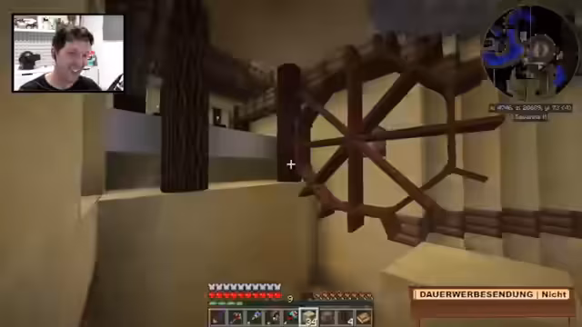00:54:29Im Stream gibt es ein Problem mit dem Sandstone, der nicht mehr zu Sand verarbeitet wird, was als 'kaputt gemacht' beschrieben wird. Der Streamer stellt fest, dass er aktiv auf dem Server ist und bei einer Verbindung Bescheid geben will. Tobi wird gefragt, wann er wieder Minecraft spielt, wobei die Serveradresse noch aus dem Discord geholt werden muss. Es wird humorvoll darauf hingewiesen, dass das Wasser, das Tobi gemacht hat, 'liebevoll' und 'sehr zärtlich' ist.