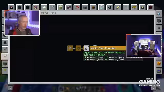 03:21:08Der Streamer wechselt in die End-Dimension, da dort bestimmte spezielle Mobs (z. B. Appaliten) spawnen, die für ein Quest benötigt werden. Auch Mobs wie Witches und Blazes werden gesucht, um Ausrüstungsteile zu farmen. Die Mobfarm wird vorübergehend ausgeschaltet, um die Performance zu verbessern und den World-Tier zu upgraden.