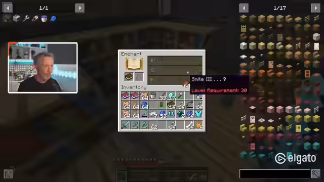 00:29:15Der Fokus liegt auf der Vorbereitung für das PvP-Projekt. Der Streamer sammelt Ressourcen wie Gold und Lapis und verzaubert Rüstungsteile,Protection und Unbreaking sind hierbei wichtig. Er erwähnt auch das Problem der Spawn-Limit-Reset-Funktion. Gemeinsam mit einem Chat-Mitglied wird eine geheime Mobfarm besucht und extra Spawner geholt, um einen Vorteil im PvP zu erlangen.