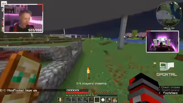 03:08:14Spark wird um Hilfe bei der Reparatur der Eisenfarm gebeten, da die Villager erneut verschwunden sind und die Farm nicht mehr funktioniert. Es wird vermutet, dass die Babys, die platziert wurden, ausgewachsen sind oder die Mob-AI-Optimierung Probleme verursacht. Der Streamer leiht sich Eisen von Klim, um einen Beacon zu bauen, und nutzt die XP-Farm von Spark. Er macht es sich zur Gewohnheit, Kisten in fremden Basen zu sortieren. Die Idee eines Kupfergolem-Skins wird diskutiert, wobei der Streamer nach einem passenden Design sucht und humorvoll seine eigenen Fähigkeiten im Skin-Design überschätzt.