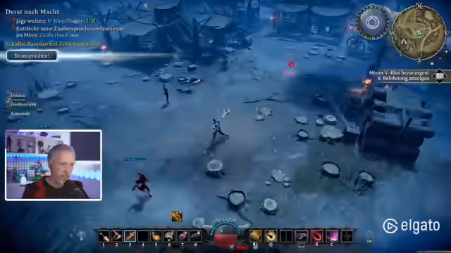 04:02:52Der Streamer führt Kämpfe gegen verschiedene Bosse wie Rufus und die Frostbohm-Schütze, wobei er taktische Manöver wie das Nutzen von Wolfsgestalt und Häusern als Deckung einsetzt. Er diskutiert die Schwierigkeiten bei der Jagd auf bestimmte Kreaturen und die Notwendigkeit von Steinsärgen als Bindungspunkte. Auch die Ausrüstung und Heilmittel während der Kämpfe werden erwähnt.