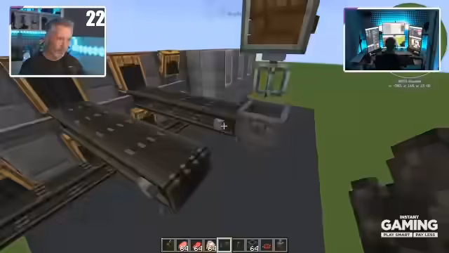 00:40:17Nachdem die grundlegende Funktionsweise geklärt ist, beginnt der Streamer mit dem praktischen Aufbau einer Autocrafting-Anlage. Er verwendet Blazeburner, Funnels und Tresol-Switches, um den Ausgang zu steuern und festzulegen, wie viele Items pro Stack produziert werden sollen. Die Anlage wird um einen langen Vault erweitert, um größere Mengen an Materialien zu lagern und zu sortieren. Das Problem der Überlaufkontrolle wird erneut angesprochen und eine Lösung über einen separaten Ausgabetunnel für Überschussmaterialien getestet.