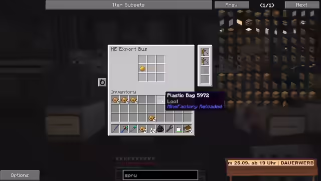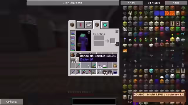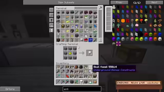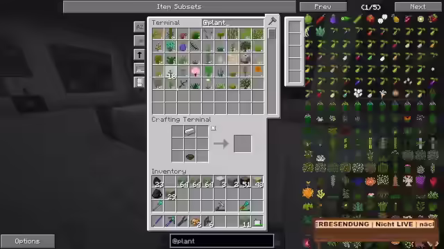 05:31:49Es wird ein ME-System geplant, inklusive Monitoren. Es wird überlegt, ob man mit einem Monitor durch Klicken etwas bauen kann. Der Unterschied zwischen verschiedenen Monitoren wird diskutiert und ein Conversion Monitor gebaut, um dessen Funktion zu testen. Es wird festgestellt, dass der Conversion Monitor es erlaubt, Items aus dem System zu entnehmen. Es wird die Idee einer Art 'McDonalds'-Bestellsystem entwickelt, bei dem man Gerichte auswählen und automatisch bauen lassen kann. Die Community wird um Ideen zur Umsetzung dieses Bestellvorgangs gebeten. Es wird erklärt, wie man mit verschiedenen Tasten Items entnehmen und hinzufügen kann.