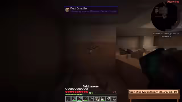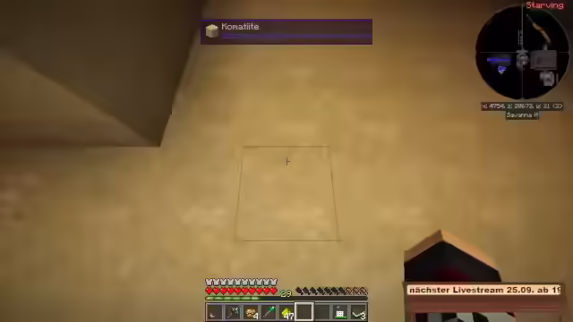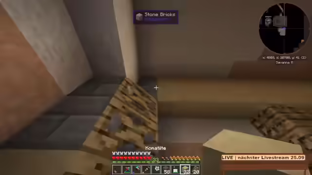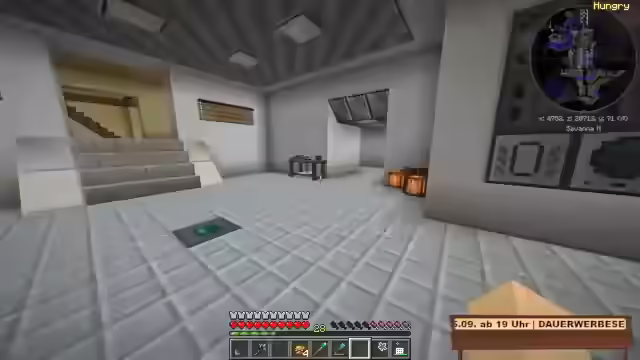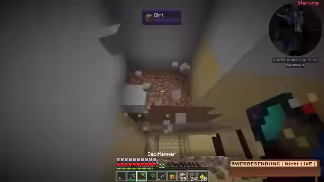 03:01:01Es wird über die Notwendigkeit eines Gärtners gesprochen. Die ausgewählten Blumen sind zu fett und es wird ein mindestens vier oder fünf Blöcke hoher Platz benötigt, um sie aufzuhängen. Es wird festgestellt, dass der eigentliche Raum, der im Kopf war, noch nicht gemacht wurde und besondere Aufmerksamkeit benötigt. Der Rest sieht aber schon viel wohnlicher aus. Laserdrills sollen auch noch einmal thematisiert werden. Es wird auf den heutigen oder morgigen Livestream und die nächste Woche hingewiesen. Es wird ein Problem mit OBS erwähnt, das zu Zeitversetztem Ton führt. Es wird gehofft, dass ein neuer Rechner das Problem löst. Es wird erwähnt, dass im Livestream einiges entstanden ist, darunter die Wohnung des Typen, der hier wohnt. Seine Wohnung ist fertig, mit Couch, Tisch, Wasserfall, Glasfront, Toilette, Lüftung und Spiegel. Es gibt einen großen Gemeinschaftsraum zum Essen. Unter der Wohnung befindet sich eine geheime Mobfarm mit einem Upgrade. Statt Hexen gibt es jetzt Oger, die Diamanten droppen. Die Diamantenausbeute beträgt etwa 100 Dias pro Stunde.