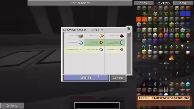04:19:13Es wird das Crafting-System erweitert und überlegt, Pylonen zu bestellen, um die Spatial-Storage-Anlage zu bauen. Zunächst werden 400 Pylonen bestellt, was 700 Meter Quarz benötigt. Es stellt sich heraus, dass keine Crafting CPUs vorhanden sind. Die Anzahl der Pylonen wird reduziert, um das System effizient zu gestalten. Die Spatial-Abteilung wurde bisher noch nie in einem so großen Projekt eingesetzt. Es wird überlegt, wie das Licht im Raum verbessert werden kann. Genug Plätze sind vorhanden, um weiterzubauen. Es wird überlegt, wie viele Spatial Storages benötigt werden und die Anlage soll laufen gelassen werden. Ein kurzer Blick in den Raum unten zeigt, wie viel davon benötigt wird. Es wird befürchtet, dass es irgendwann zu Rucklern kommen könnte. Der Raum vorne ist zu klein, da noch eine Energieanzeige und Türen benötigt werden. Die Idee eines Fahrstuhls und optionaler Skyblocks wird diskutiert, um das Spielerlebnis für alle zu optimieren. Die Positionierung der Tür und die Anordnung des Control Rooms werden geplant, um die obere Reihe mitzunehmen. Es wird geschätzt, wie viele Blöcke für eine Lane benötigt werden.