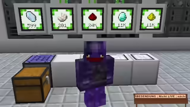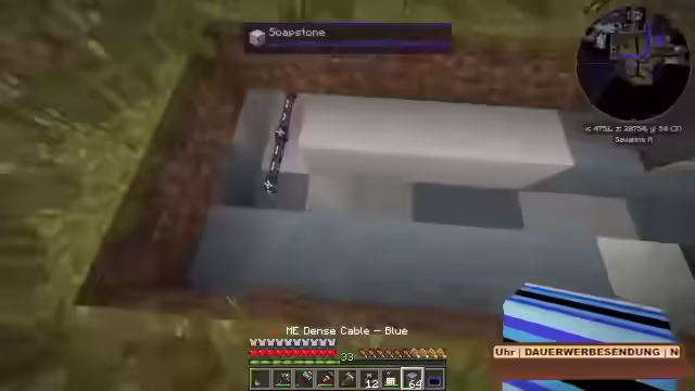 05:05:35Es wird überlegt, die Dinger zu deaktivieren, so dass Gronkh nicht mehr merkt, ob die Höhle läuft oder nicht. Es wird versucht, einen Schalter anzubringen, aber es funktioniert nicht. Es werden Junk Loader platziert, um zu wissen, wo die Dinger hinkommen. Das ME-System ist vom Strom gegangen. Es wird nach dem Dimensional Anchor gesucht, um ihn zu deaktivieren. Es wird darum gebeten, in die Kommentare zu schreiben, wenn jemand weiß, wo der andere war. Es wird überlegt, alle Räume per Strom zu beleuchten. Der Custom NPC Mod soll noch ausprobiert werden. Es wird festgestellt, dass die Verarbeitungshalle noch Strom bezieht und weiterproduziert, bis der Buffer voll ist. Es wird nach der Stromquelle gesucht. Es wird vermutet, dass der Reststrom in den Kabeln drin war. Es wird überlegt, den Power Monitor zu nehmen, um zu sehen, was im Netzwerk Strom verbraucht. Der Helm wird aufgesetzt und der Skin soll geändert werden. Die Höhle soll abgeschlossen werden. Das Buch zum Teleportbaum wird vor die Tür gestellt, damit sich niemand verirrt. Ein Schild zum Teleportbaum wird angebracht.