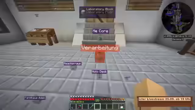 06:23:37Es wird angekündigt, dass es Montagabend einen Livestream ab 19 Uhr geben wird. Es wird ein kurzer Rundgang gemacht, um zu zeigen, was in einer Woche passiert ist. Die Felder sind voll, außer Weizen, das einen besonders großen Speicher hat. Es wird in den ME-Core geschaut, um zu sehen, was in das System zugemüllt wurde. Glasbottles und Zucker werden gefunden. Rattenfleisch wird als potenziell aussortierbar identifiziert. Es wird festgestellt, dass die Fischer laufen und das System noch nicht wesentlich voll ist. Ideen und Wünsche für das Projekt sollen in die Kommentare geschrieben werden. Es wird überlegt, am Wochenende an dem Projekt dranzubleiben, um es fertigzustellen. Es wird kurz die Verarbeitung und die Bibliothek erwähnt. Der Boden in der Bibliothek wird mit Painted Glow Zone versehen, da andere Bücherregale reinkommen, die vielleicht nicht leuchten. Es wird erwähnt, dass Skyworld gefährlich mit Monsterspawn ist, da die Monster jede Möglichkeit nutzen, um zu spawnen. Es wird gesagt, dass man den neuen Rechner im Livestream zusammenbauen wird. Es werden Carpenter-Blöcke benötigt. Es wird überlegt, Bücherregale von Hand einzusortieren, wird aber verworfen.