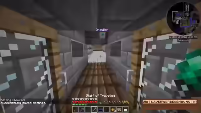 05:23:42Es wird erwähnt, dass die Metacannon mit Eisennuggets und Beschleunigerkarten aufgerüstet werden kann. Der heutige Abend ist für den Skyworld-Livestream um 19 Uhr geplant. Es wird der Fortschritt beim Bau eines Ganges in der Höhle beschrieben, einschließlich der Platzierung von Holz und Glowstone zur Beleuchtung. Es wird überlegt, ob die Balken eckig oder rund sein sollen und eine Harzfabrik mit Blockplacer und Blockbreaker gebaut werden könnte. Es wird die Lichtsituation im Gang verbessert und über die Schaffung einer gemütlichen Atmosphäre durch Dunkelheit gesprochen. Ein Fehler beim Bau wird korrigiert und das Ergebnis als 'Hammergang' bezeichnet. Es wird die weitere Gestaltung des Ganges mit Türen, einer Kneipe und einer Cafeteria geplant.