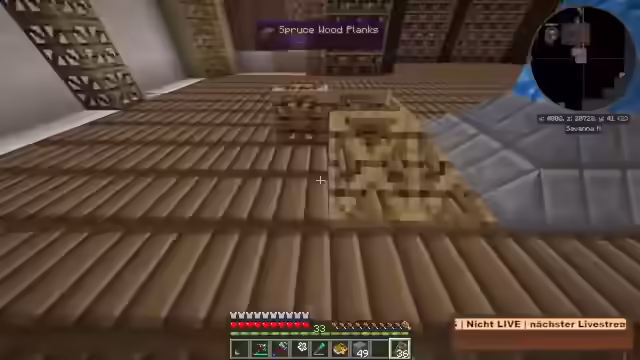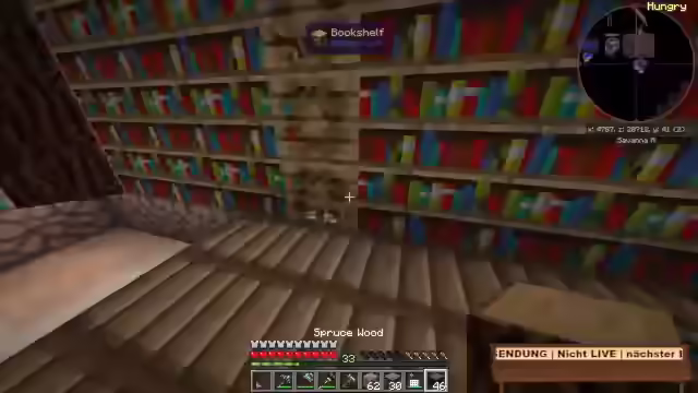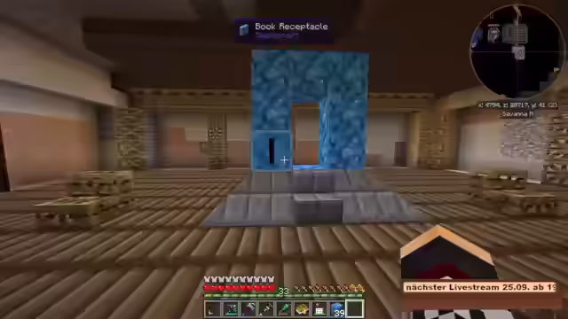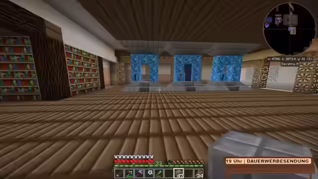 01:33:21Es wird festgestellt, dass das Holz in den Regalen etwas anders ist und es einen Holzmischmasch gibt. Es wird überlegt, die ganze Bibliothek mit echten Büchern zu füllen, aber es wird befürchtet, dass dies die Performance beeinträchtigen könnte. Es werden Scharpnisbücher gefunden. Es werden mehr Books benötigt. Es werden Items gesammelt. Die Mob Farmer wurde wieder angemacht und geupgradet. Es werden Abteilungen vorbereitet, die im Livestream ausgehoben werden. Inventory Tweaks wird gelobt. Die andere Bibliothek ist nicht weit entfernt. Es wird entschieden, dass das erhöhte Bücherregal gut aussieht. Es könnten auch andere Bücherregale genommen werden. Es wird nach den Tools gesucht. Der Hammer ist weg. Es wird befürchtet, dass die Tools weggeschmissen wurden. Es wird in einer Müskraft-Dimension nach den Tools gesucht. Die Suche nach den Tools beginnt. Es wird beschlossen, etwas anderes zu zeigen. Es wird ein paar Schießies bestellt. Es wird gezeigt, dass die Turbinen fehlen. Es wird die Farm aus Aden gezeigt.